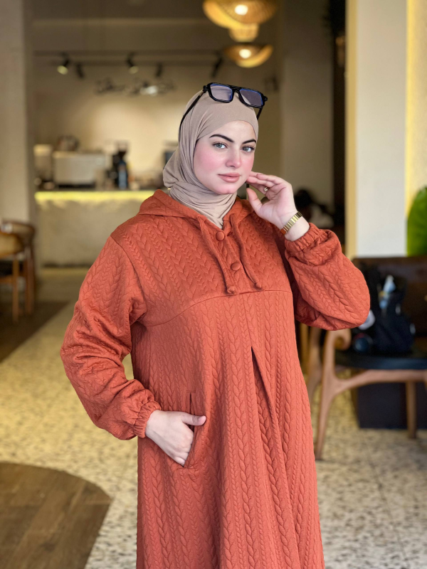 دريس الخروج الكاجوال للمحجبات بخامة جاكار مدفر يجمع بين الفخامة والراحة في آنٍ واحد. يتميز التصميم بقصة واسعة محتشمة مناسبة لجميع الأجسام، مع رباط خصر أنيق يمنح تناسقًا رائعًا للقوام وإطلالة أنثوية راقية.