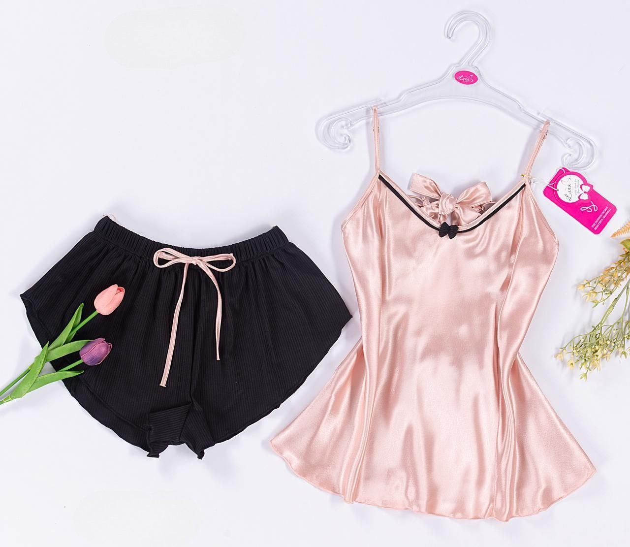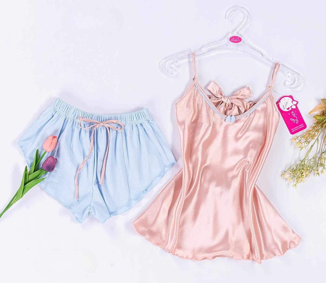 ارتقي بلحظات راحتك مع بيجامة شورت ستان مصممة لتمنحك إحساس ناعم وفاخر من أول لمسة. الخامة الستان تعكس الأنوثة والرقي، وتضيف لمسة من الجاذبية على إطلالتك حتى في البيت.