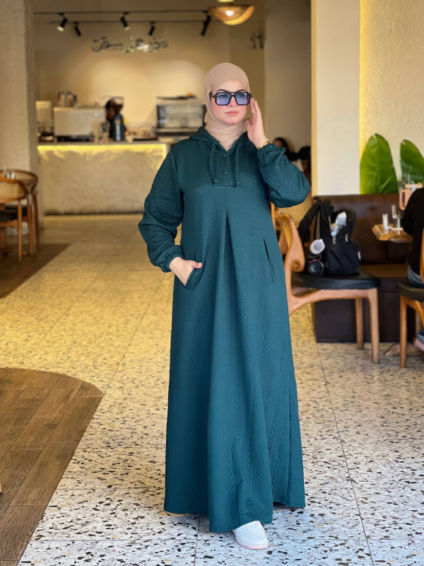 دريس الخروج الكاجوال للمحجبات بخامة جاكار مدفر يجمع بين الفخامة والراحة في آنٍ واحد. يتميز التصميم بقصة واسعة محتشمة مناسبة لجميع الأجسام، مع رباط خصر أنيق يمنح تناسقًا رائعًا للقوام وإطلالة أنثوية راقية.