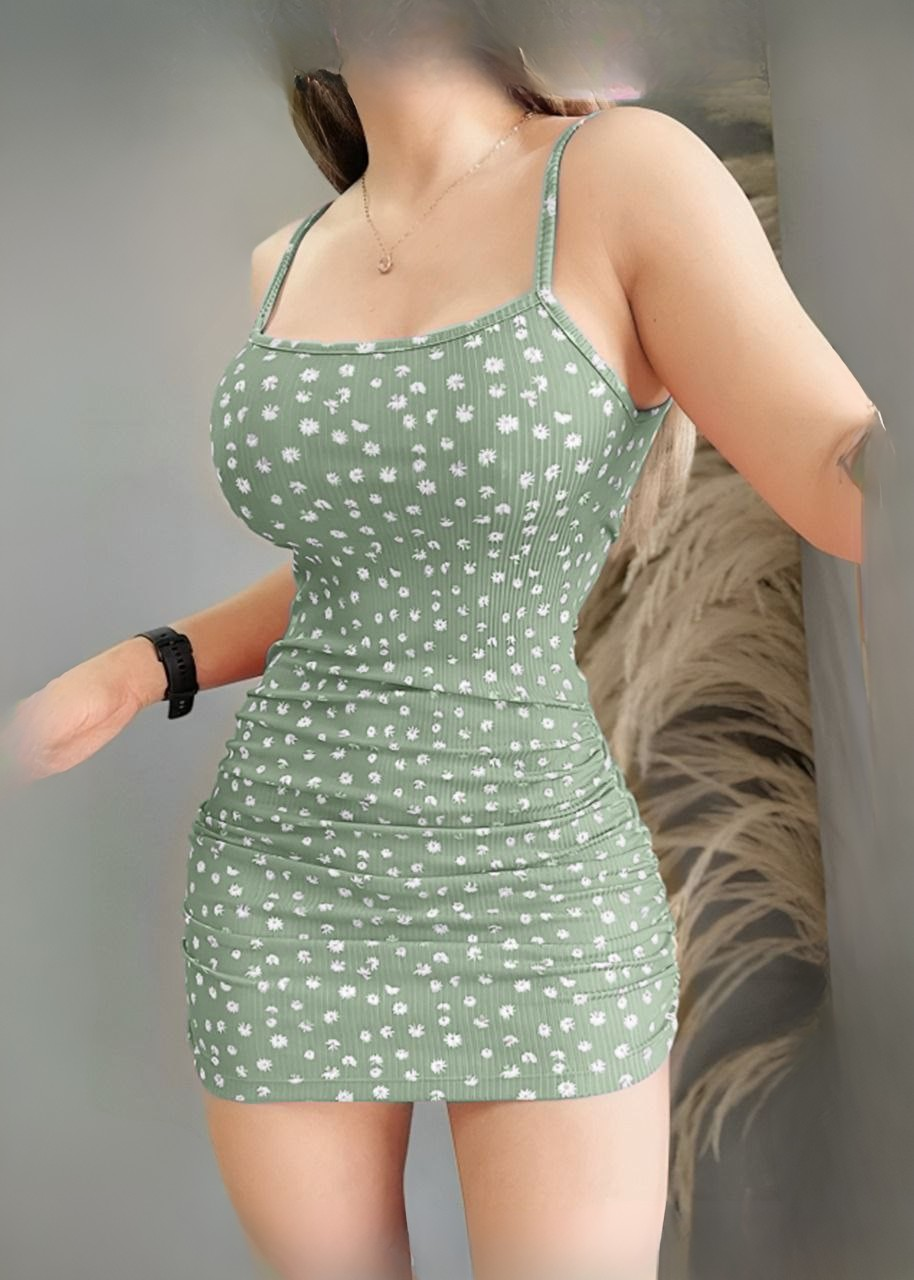 قميص نوم قصير ريب مضلع بكشكشة جانبية
