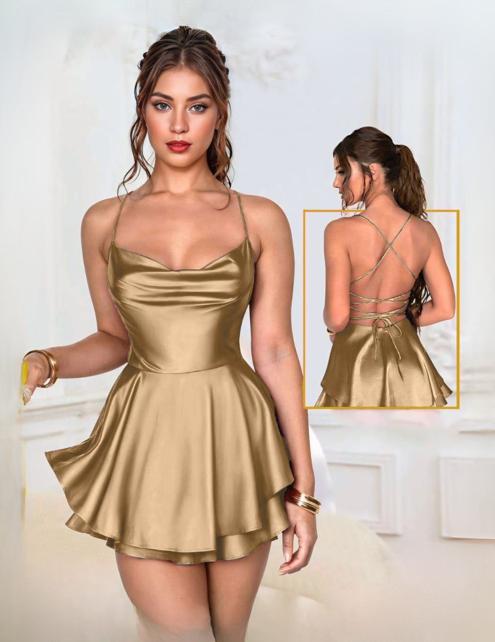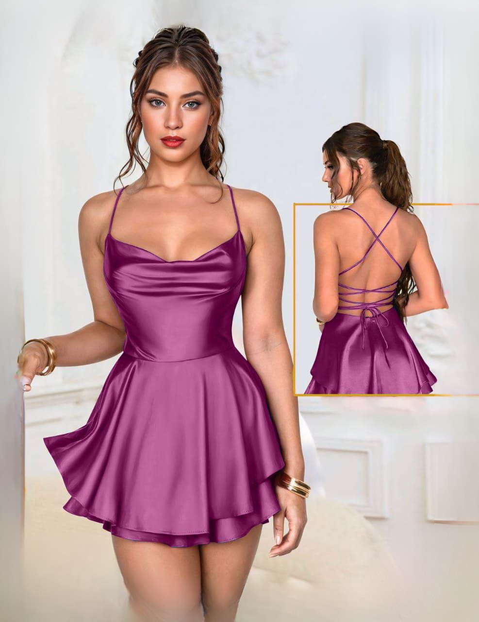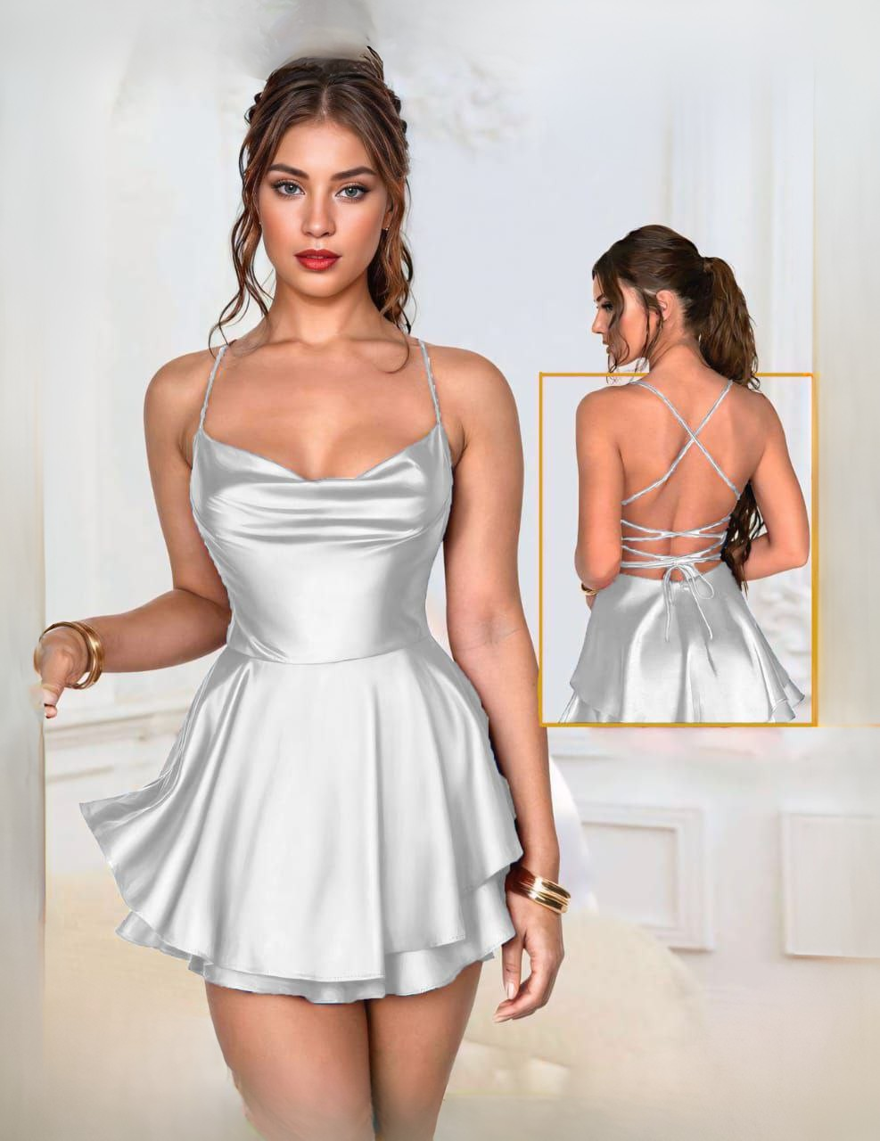 النوع: لانجيري قصير | الخامة: ستان ناعم | التصميم: بسيط وأنثوي