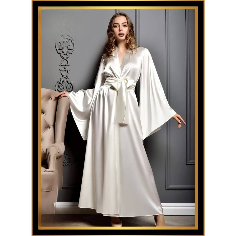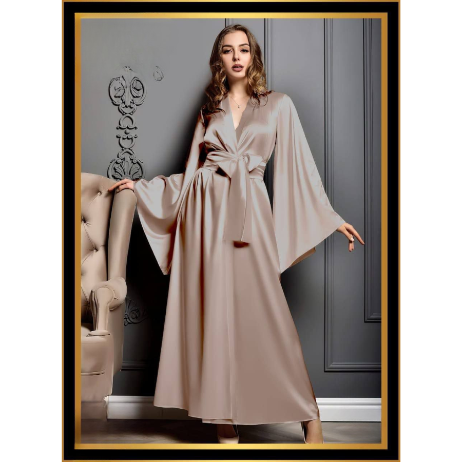 أضيفي لمسة من الفخامة إلى إطلالتك المنزلية مع روب الستان الأنيق.